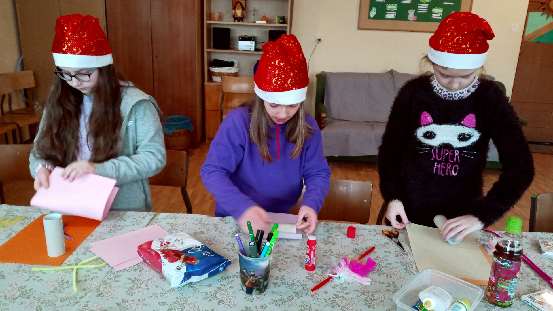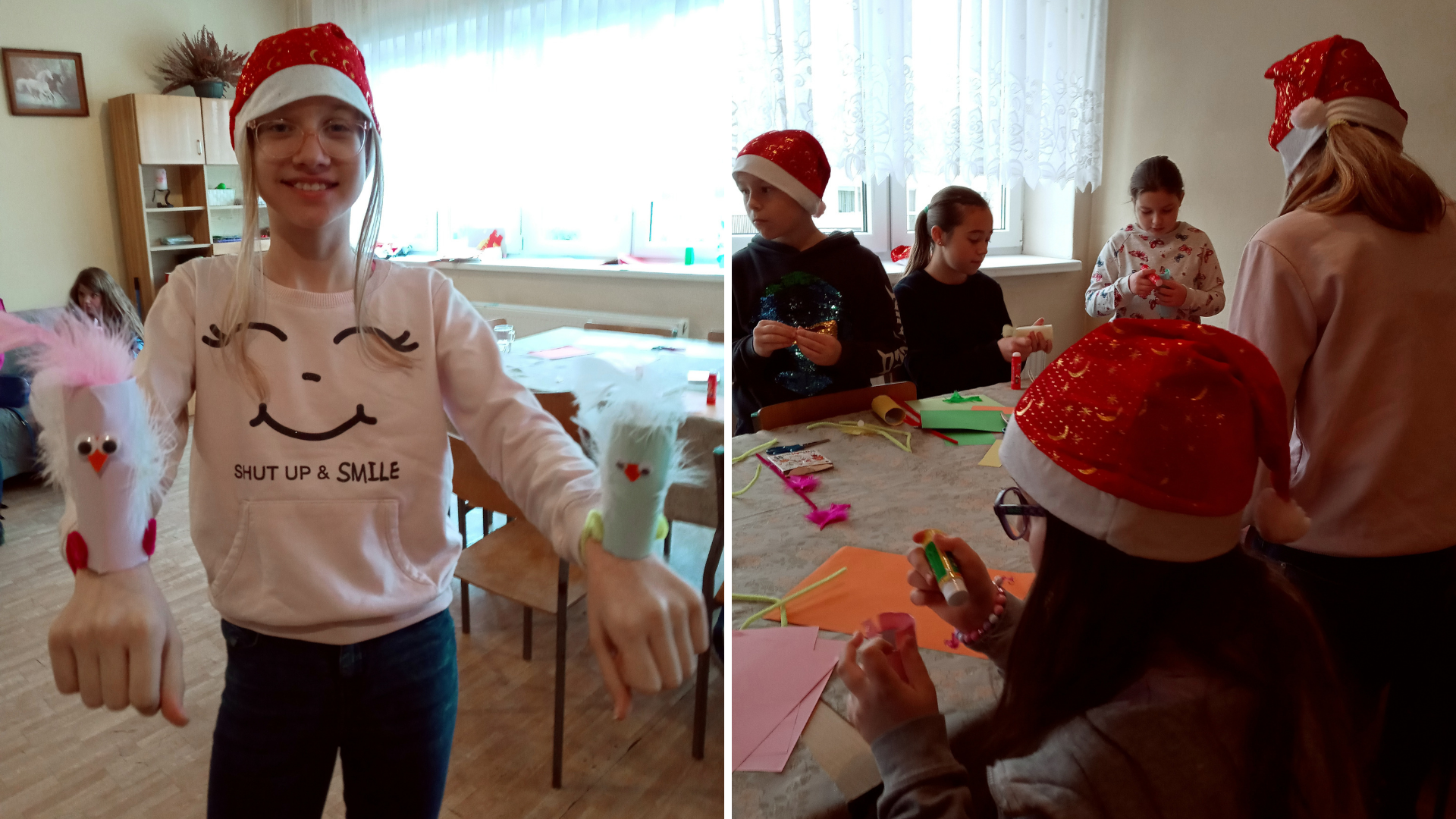 Dodatkową atrakcją podczas spotkania była mikołajkowa niespodzianka przygotowana przez rodziców. Każdy uczestnik warsztatów otrzymał czapkę Mikołaja oraz słodycze. Bardzo dziękujemy rodzicom Niny i Marysi za wsparcie i miły gest!