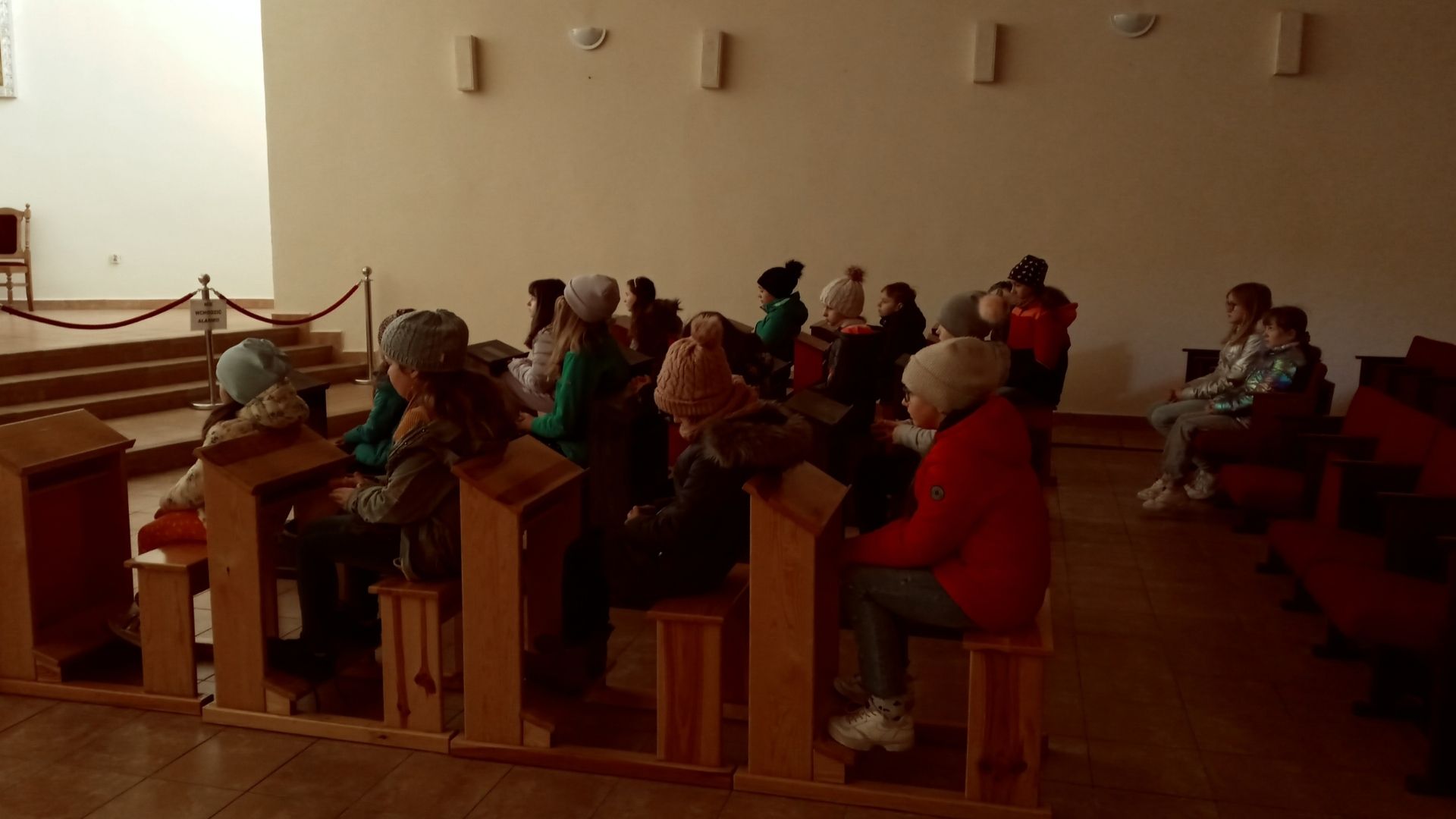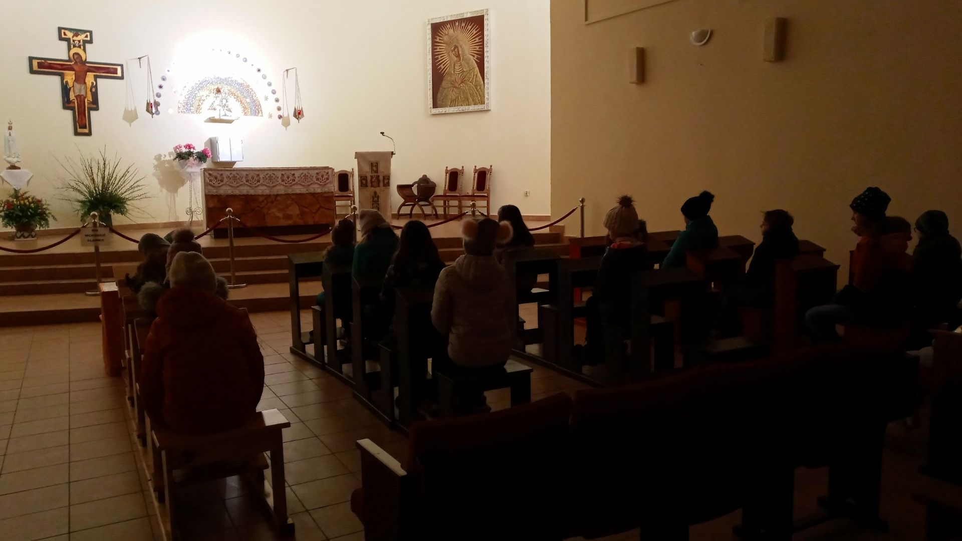 Pan Jezus najtrudniejsze chwile przed śmiercią na krzyżu spędził na rozmowie z Ojcem. Na modlitwie mówił Bogu o swoim smutku i trwodze. Niestety apostołowie zawiedli Pana Jezusa i zasnęli podczas Jego modlitwy, dlatego po katechezie schola udała się do Kaplicy Adoracji przy kościele, by w ciszy pocieszać Jezusa i czuwać razem z Nim podczas Jego modlitwy w Ogrodzie Oliwnym.