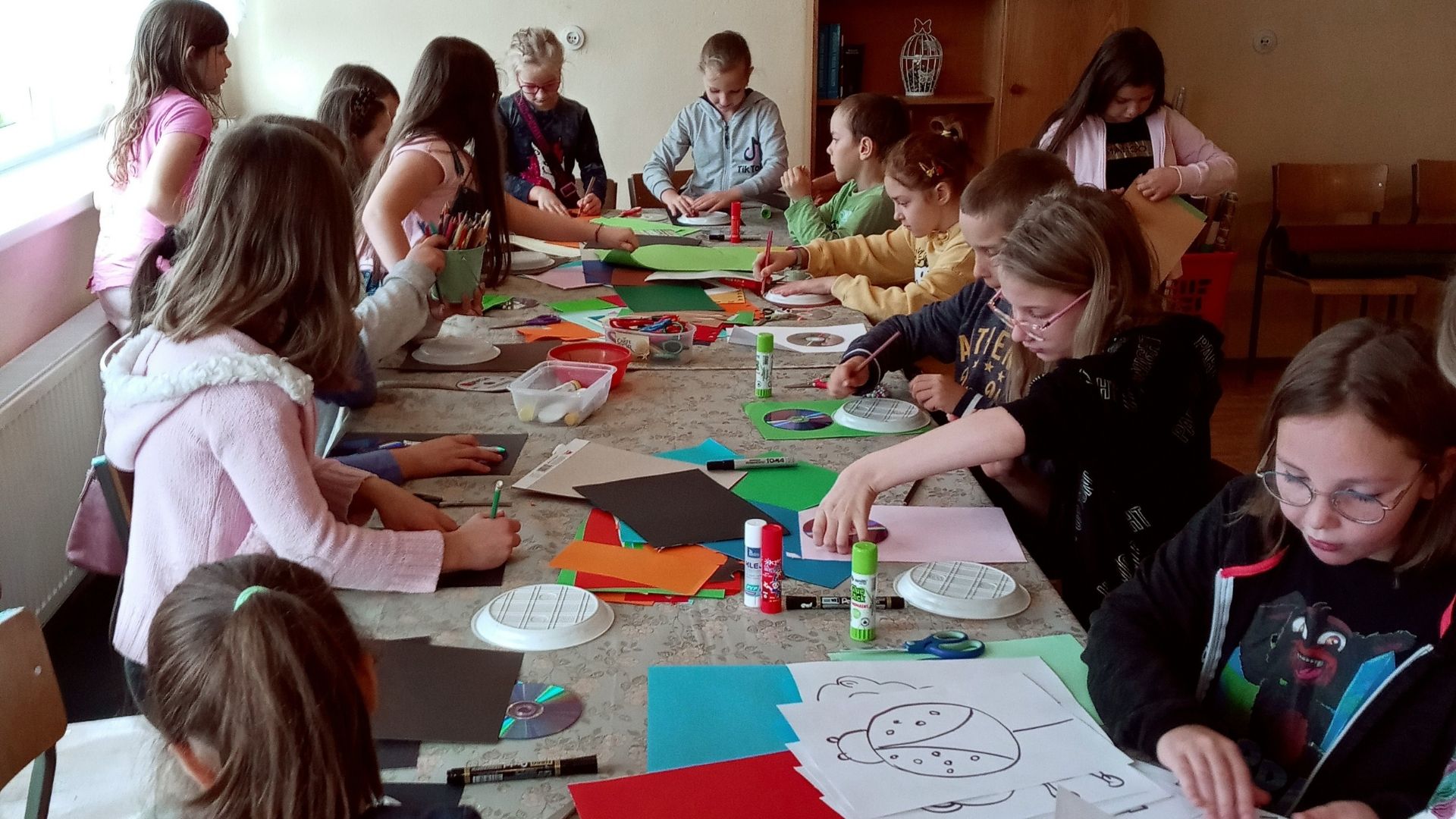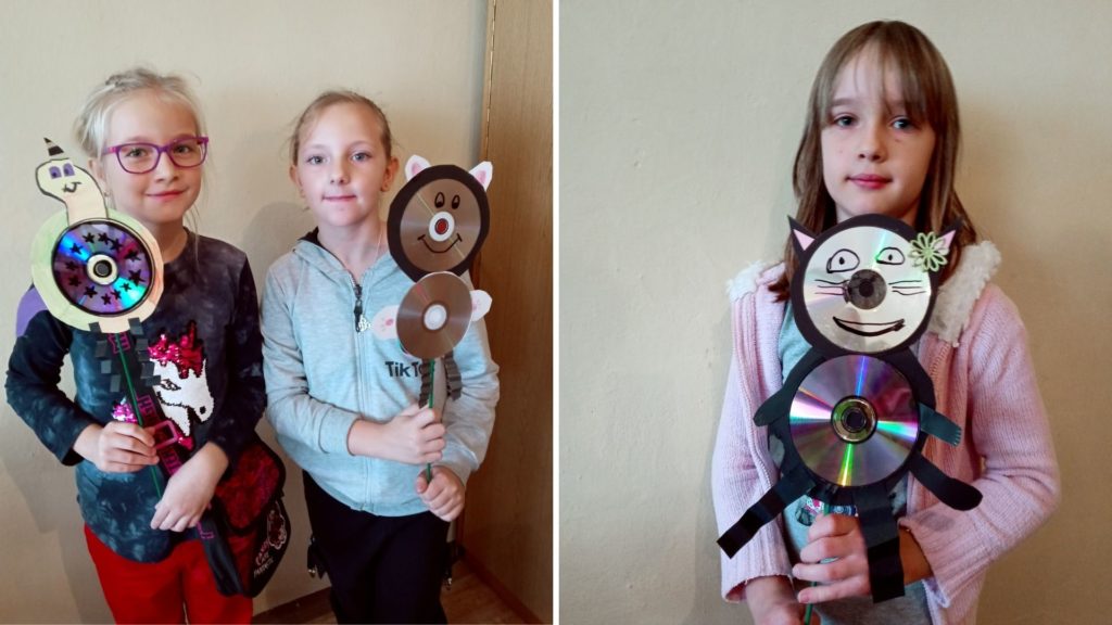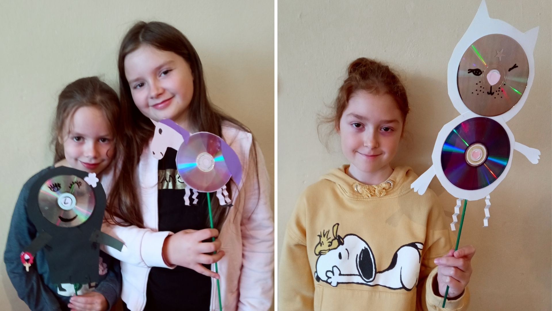 Potem były warsztaty plastyczne! Tym razem dzieci wykonywały ze starych płyt CD kolorowe pacynki. Każda praca była oryginalna i wyjątkowa. Uczestnicy spotkania wykazali się niezwykłą kreatywnością.