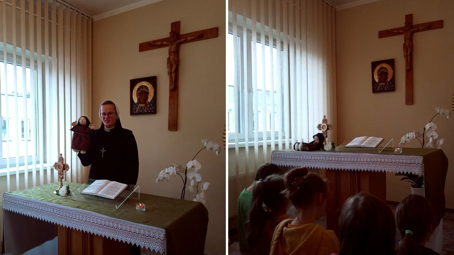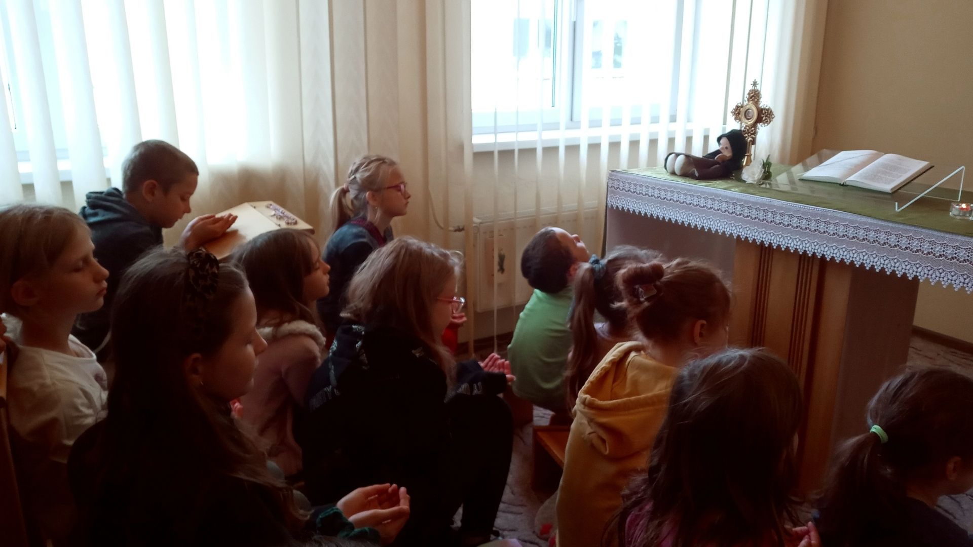 W kaplicy sióstr dzieci usłyszały najpierw katechezę o tym, jak można pomagać osobom, które udały się w podróż do dalekich krajów, by głosić naukę Jezusa. Siostra Bogumiła Ptasińska CST opowiedziała dzieciom, jak misjonarzom pomagała św. Teresa od Dzieciątka Jezus oraz dlaczego papież ogłosił ją Patronką misji i misjonarzy. Zachęciła uczestników spotkania do naśladowania św. Teresy z Lisieux.