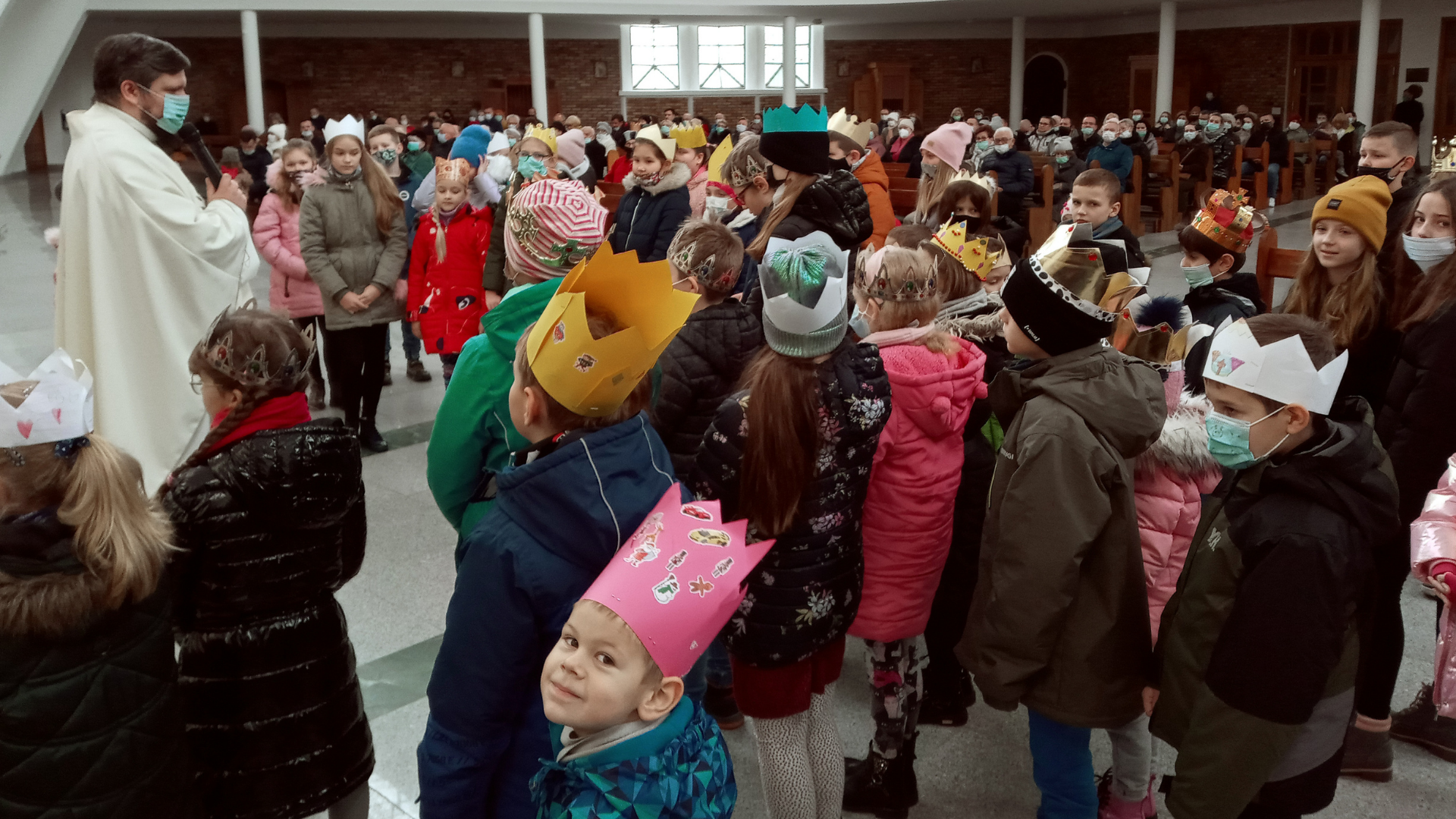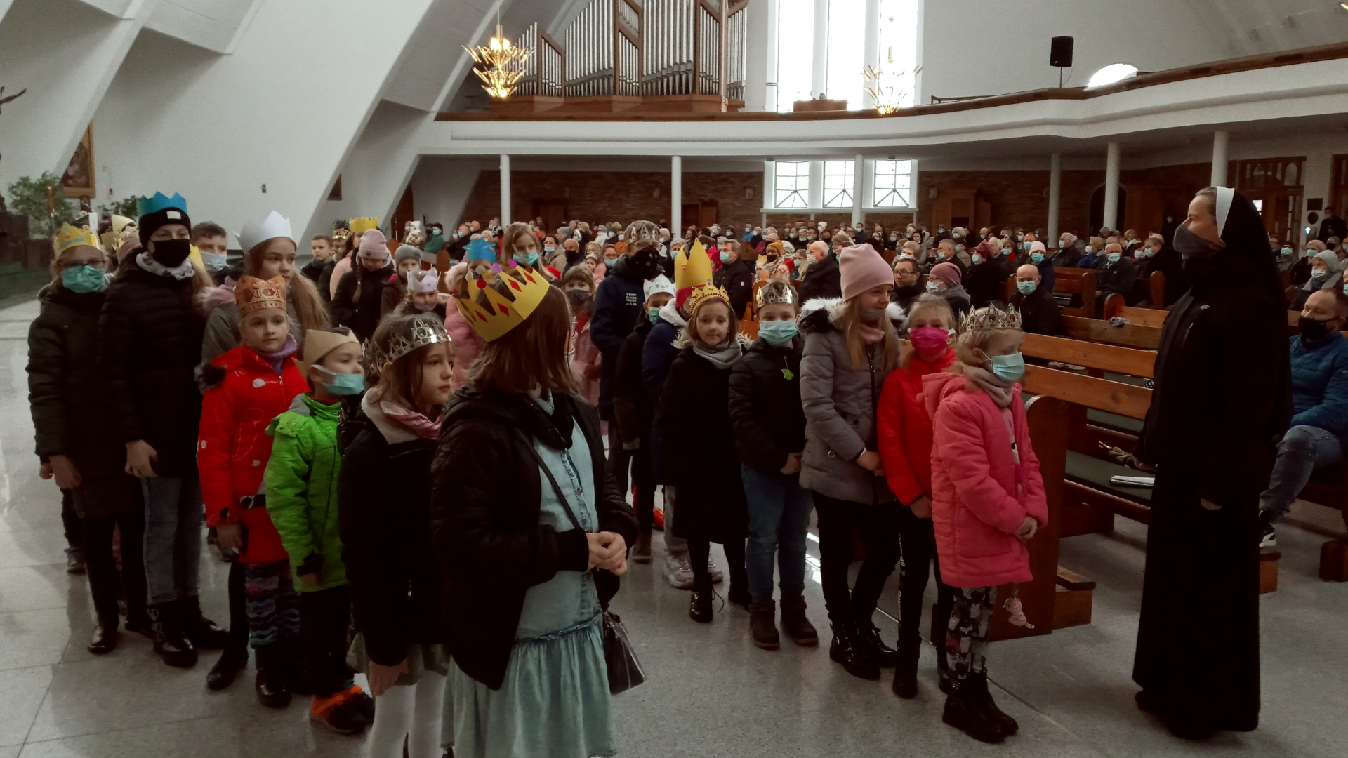 W Uroczystość Jezusa Chrystusa Króla Wszechświata na Mszę świętą o godz. 11.00 dzieci przyszły do kościoła Matki Bożej Królowej Polski w koronach na głowie, by wszystkim zebranym w świątyni przypomnieć, że jesteśmy dziećmi Najwyższego Króla Królów!