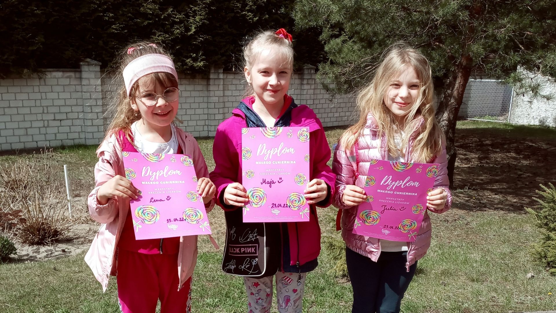 Na zakończenie spotkanie organizatorzy warsztatów przeprowadzili konkurs. Za poprawne odpowiedzi z wiedzy na temat ręcznego wyrobu słodyczy oraz za samodzielne wykonanie lizaka, każdy otrzymał dyplom “Małego cukiernika”.