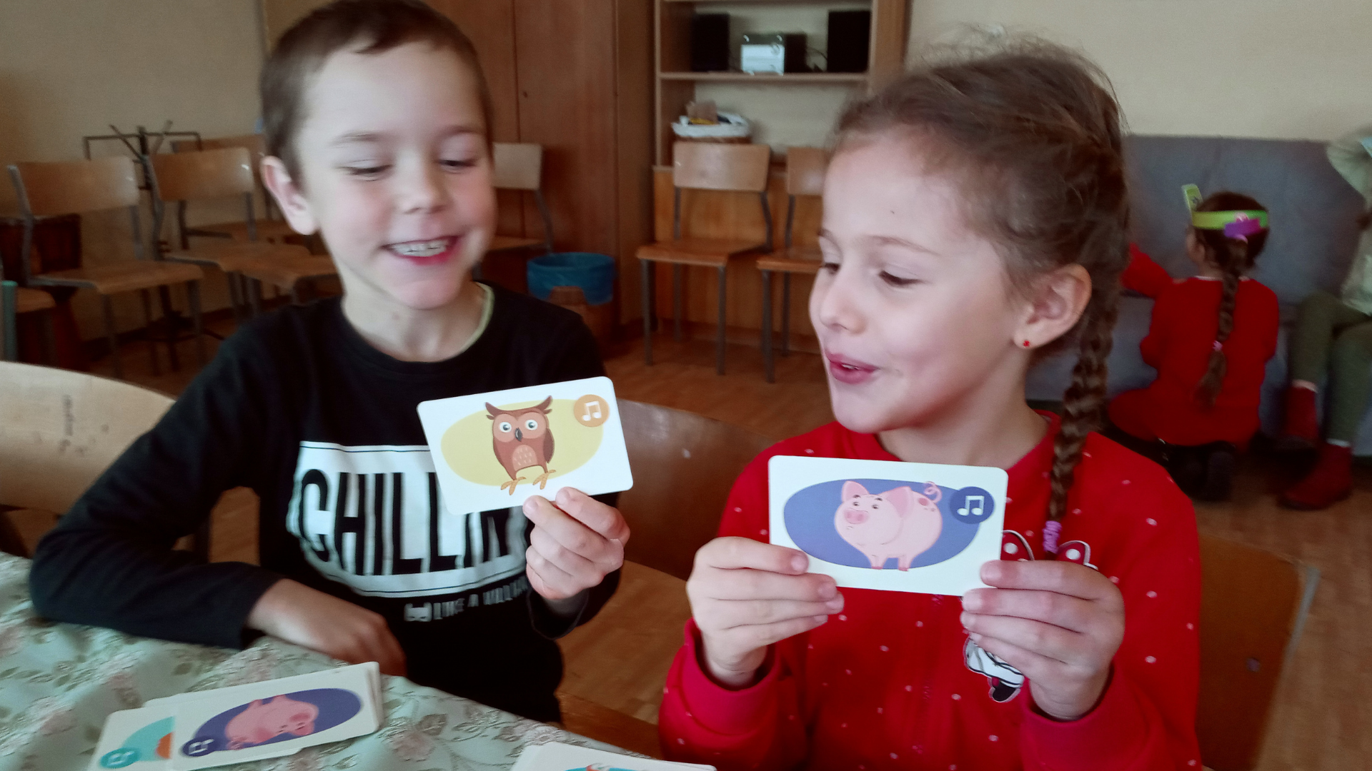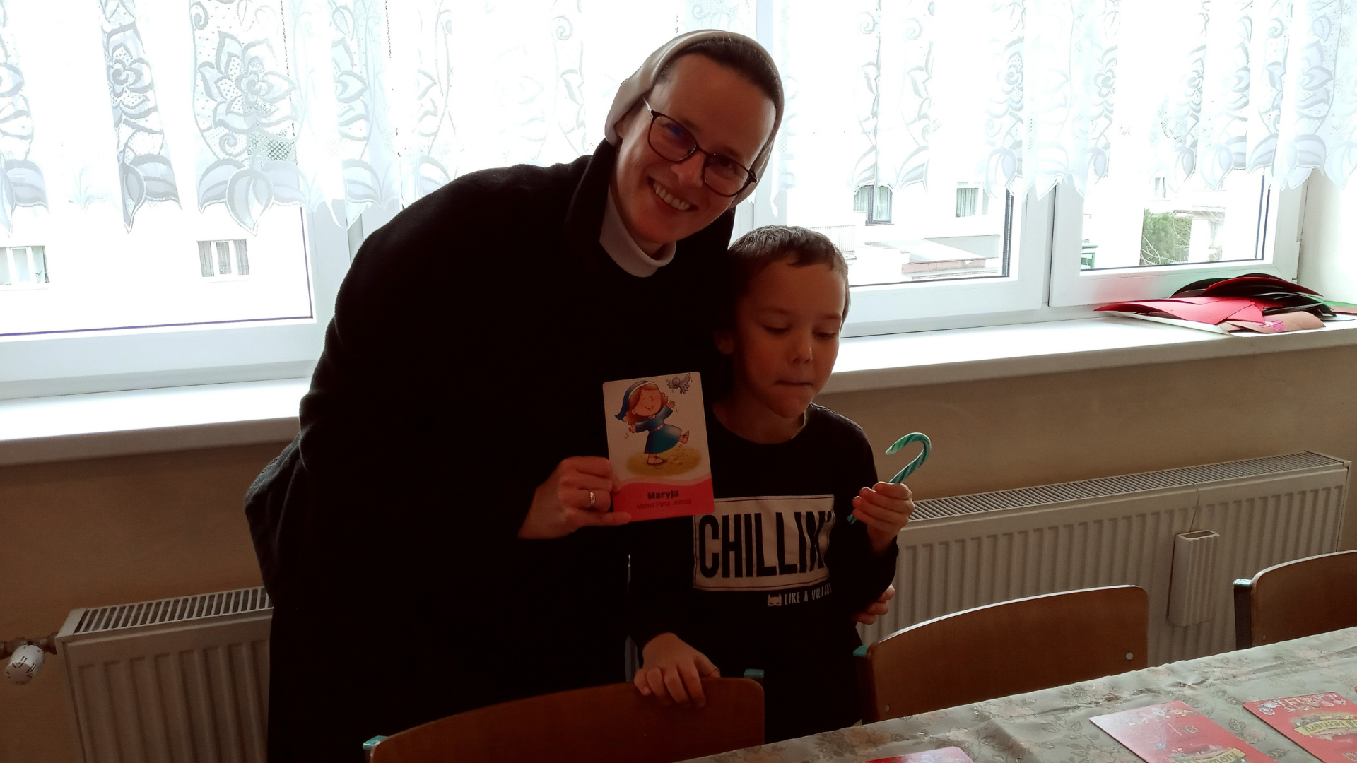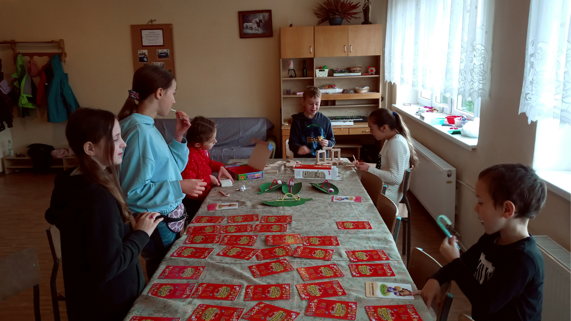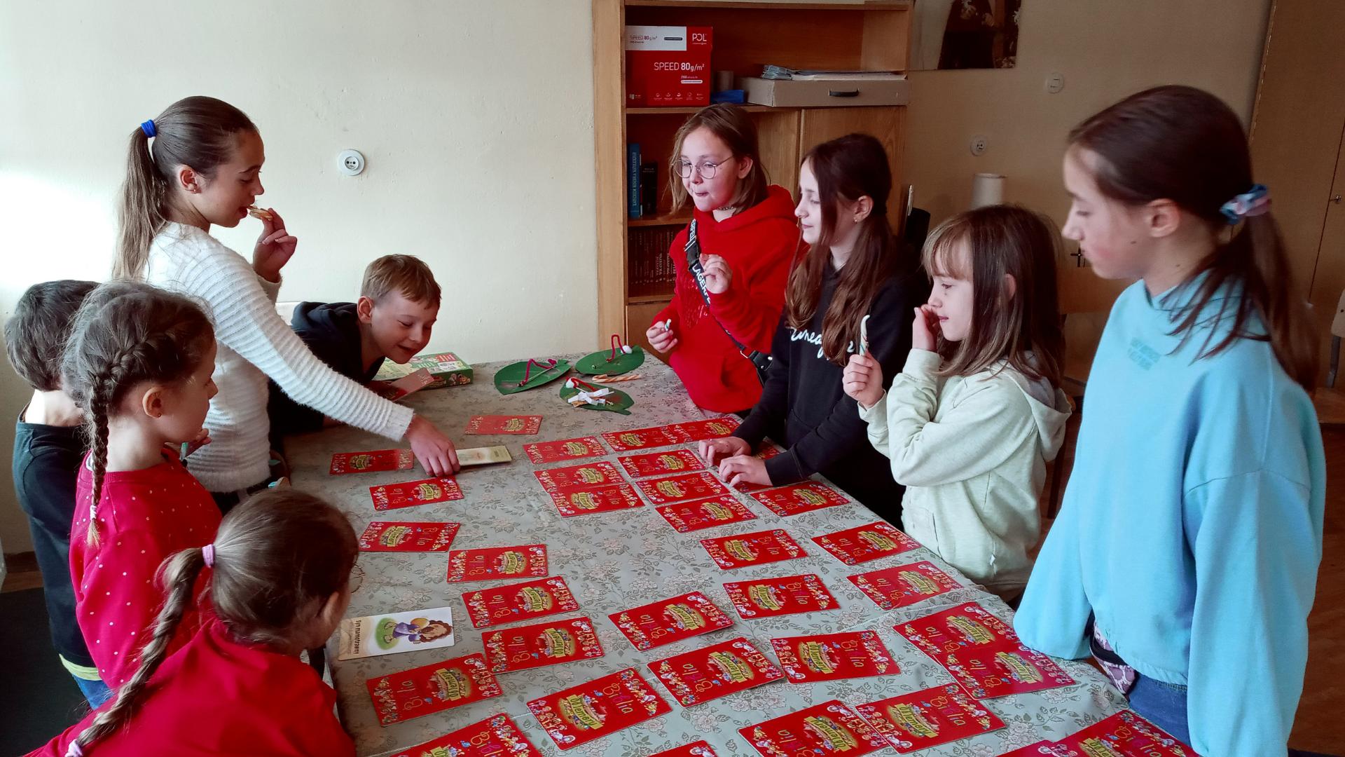 Pod koniec naszego listopadowego spotkania dzieci poczęstowały się lizaczkami, a potem rozpoczęły się zabawy integrujące grupę. Jedną z ulubionych zabaw scholi jest zabawa na zapamiętywanie, czyli biblijne memory. Maluchy lubią też bawić się w dyrygenta, który kieruje grupą przy pomocy gestów.