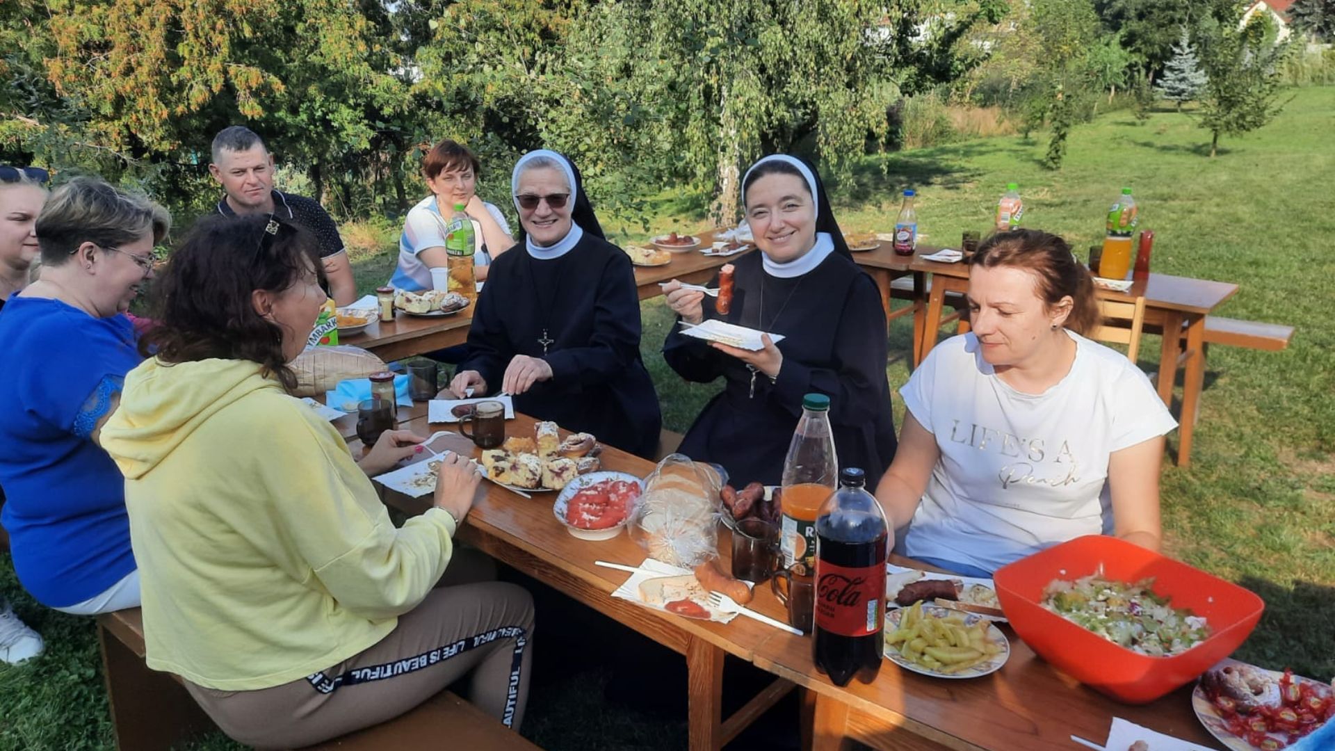 Po południu wzięłyśmy udział we wspólnej agapie w gronie parafian. Był grill, tańce integracyjne i gra w piłkę. Niedzielę głoszenia o św. Teresie w parafii w Kruszwicy uważamy za bardzo udaną i potrzebną dla popularyzacji małej drogi św. Teresy od Dzieciątka Jezus.