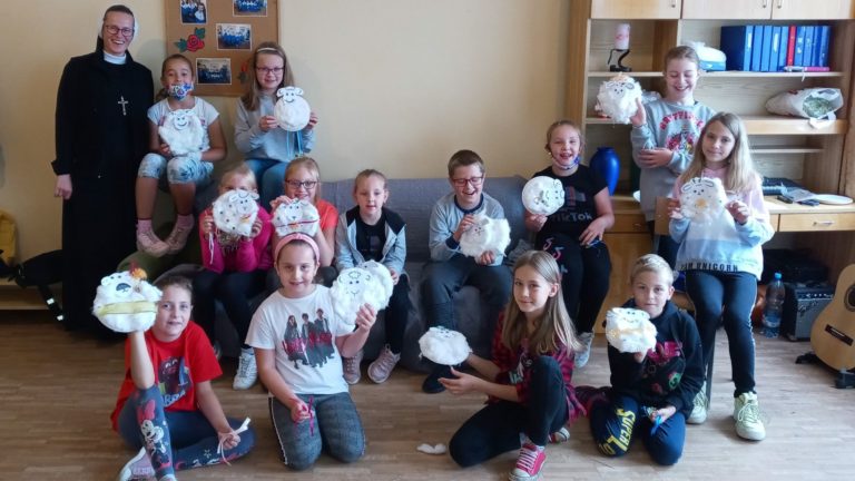 Pierwsze spotkanie po długiej przerwie miało charakter formacyjno-warsztatowy. Było obecnych 16 osób. Na początku dzieci mogły zapoznać się na nowo w grupie poprzez zabawy integracyjne, m.in. z szarfami przy dźwiękach muzyki relaksacyjnej. Potem rozważany był fragment z Pisma Świętego opisujący Jezusa, jako Dobrego Pasterza, który troszczy się o wszystkie swoje owce. Wspólnie prosiliśmy Jezusa podczas modlitwy, by strzegł wszystkich dzieci oraz ich rodzin.