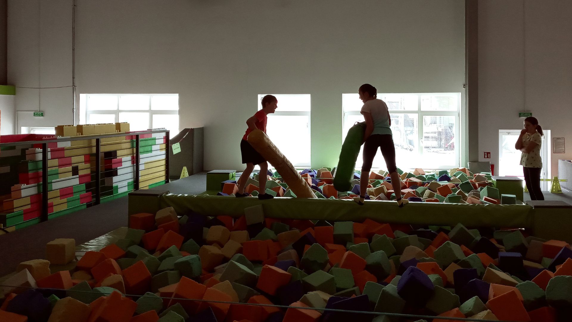 Po ćwiczeniach dzieci mogły swobodnie bawić się w basenie wypełnionym gąbkami, mocować się, jak gladiatorzy na kładce oraz skakać po różnorodnych trampolinach. Dużą atrakcją były również podwieszone gniazda z siatki.