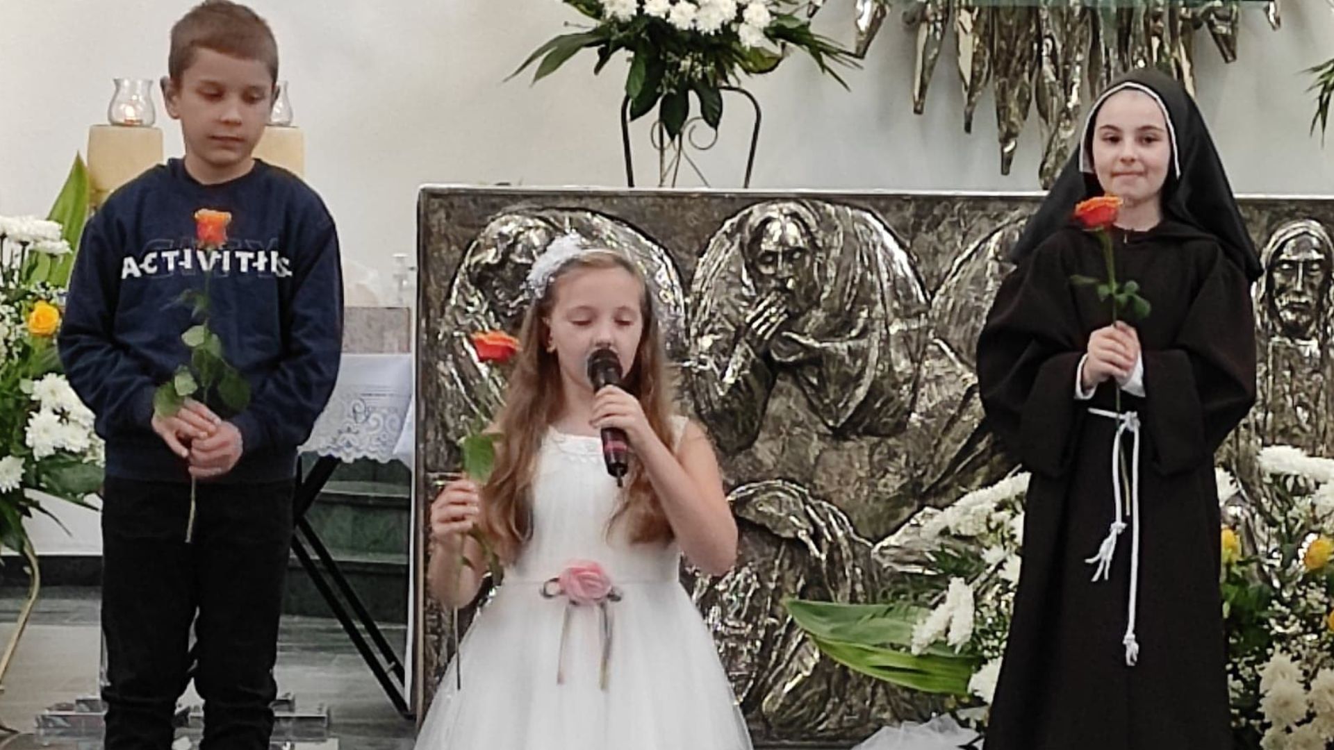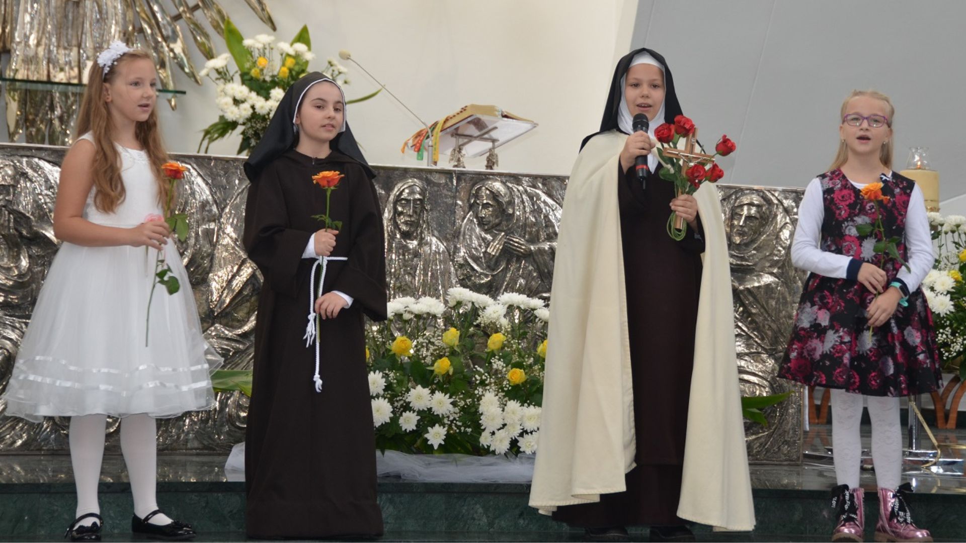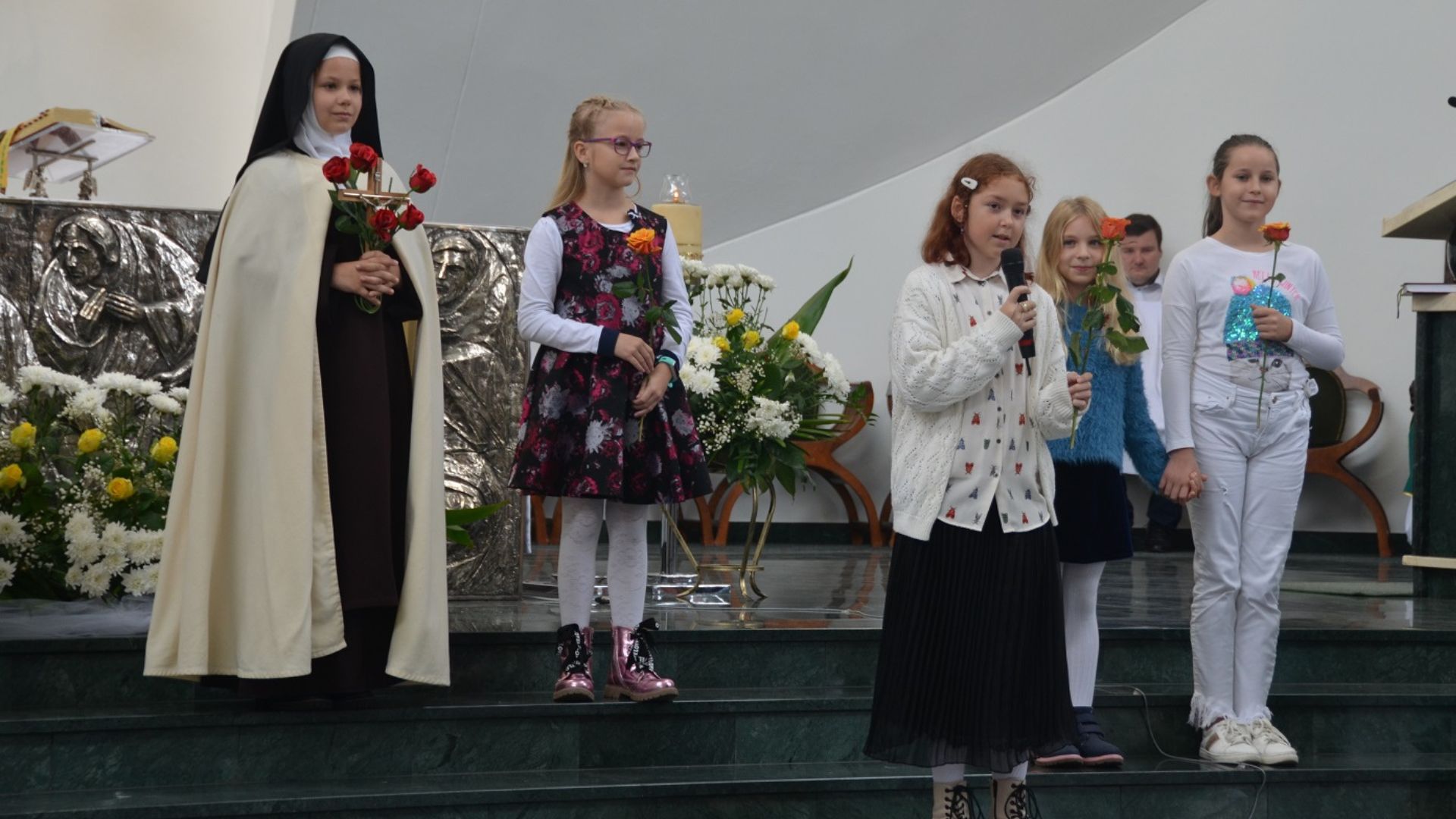 Schola Boże Nutki, animowana przez s. Bogumiłę Ptasińską i Elżbietę Puchalską, przygotowała montaż słowno-muzyczny pt. „Róże św. Tereski”. Dzieci ukazały widowni kilka wybranych cudów, które dokonały się przez wstawiennictwo św. Teresy od Dzieciątka Jezus oraz zachęciły wszystkich do modlitwy przez Jej wstawiennictwo.