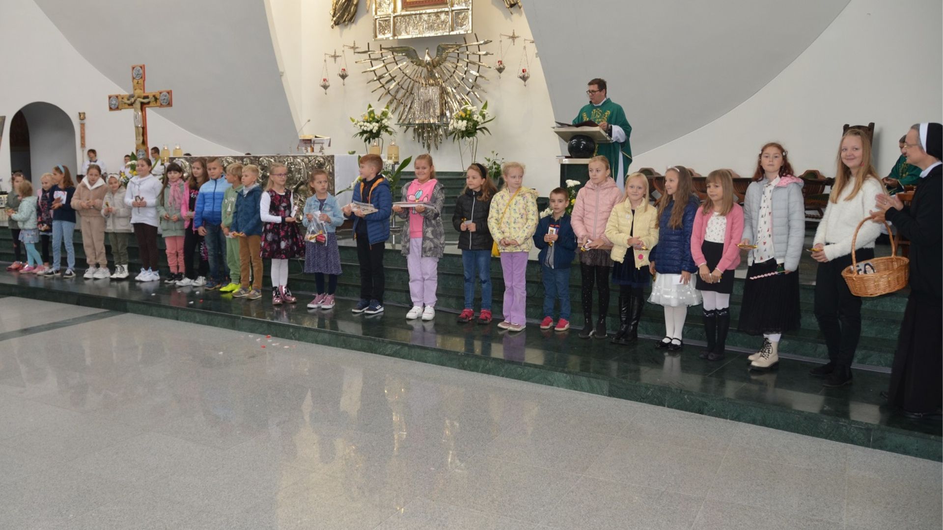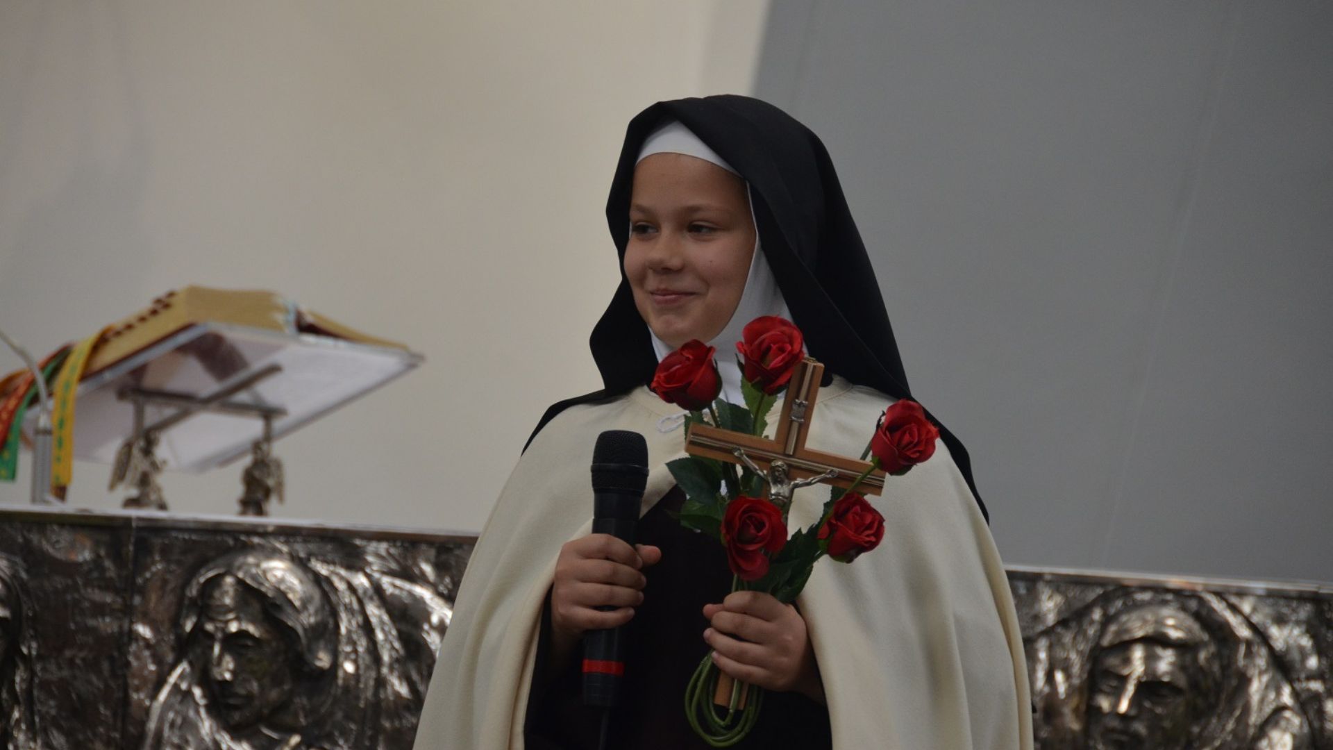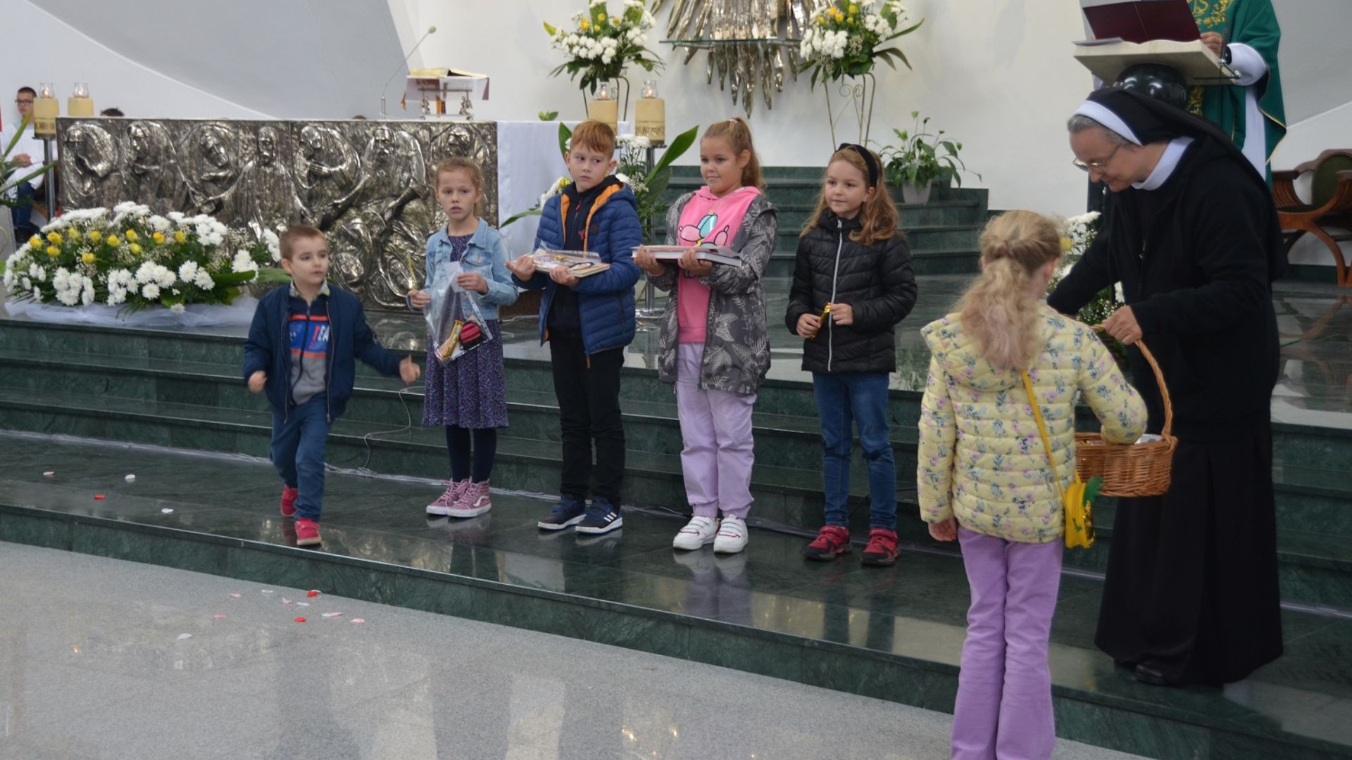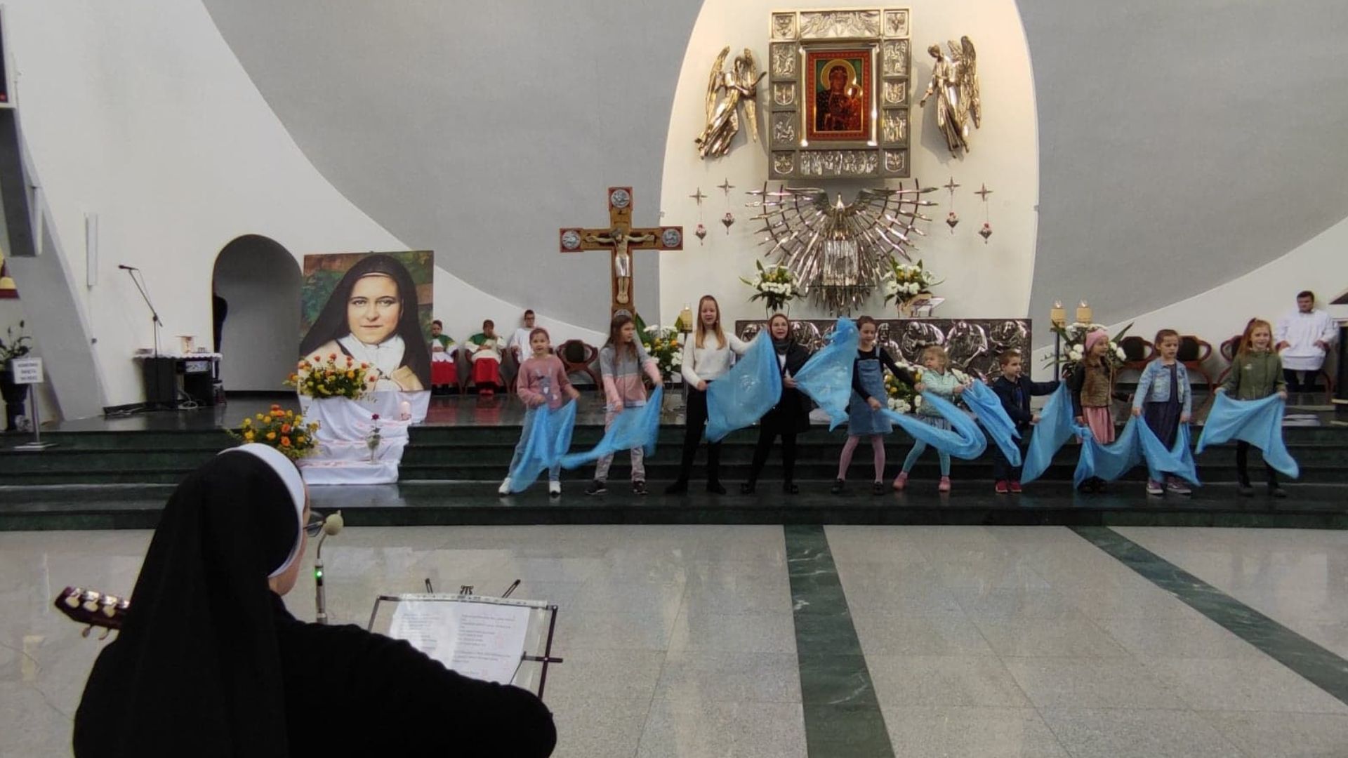 Schola Boże Nutki, animowana przez s. Bogumiłę Ptasińską i Elżbietę Puchalską, przygotowała montaż słowno-muzyczny pt. „Róże św. Tereski”. Dzieci ukazały widowni kilka wybranych cudów, które dokonały się przez wstawiennictwo św. Teresy od Dzieciątka Jezus oraz zachęciły wszystkich do modlitwy przez Jej wstawiennictwo.