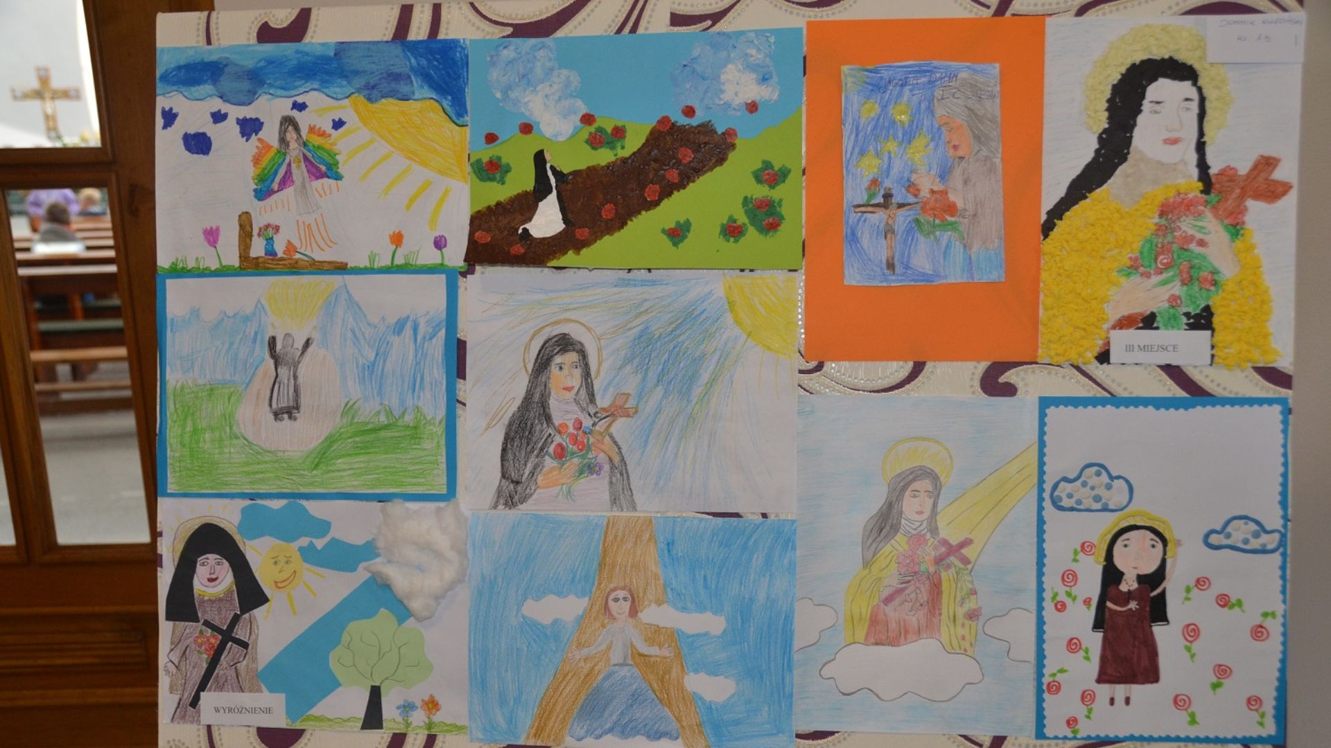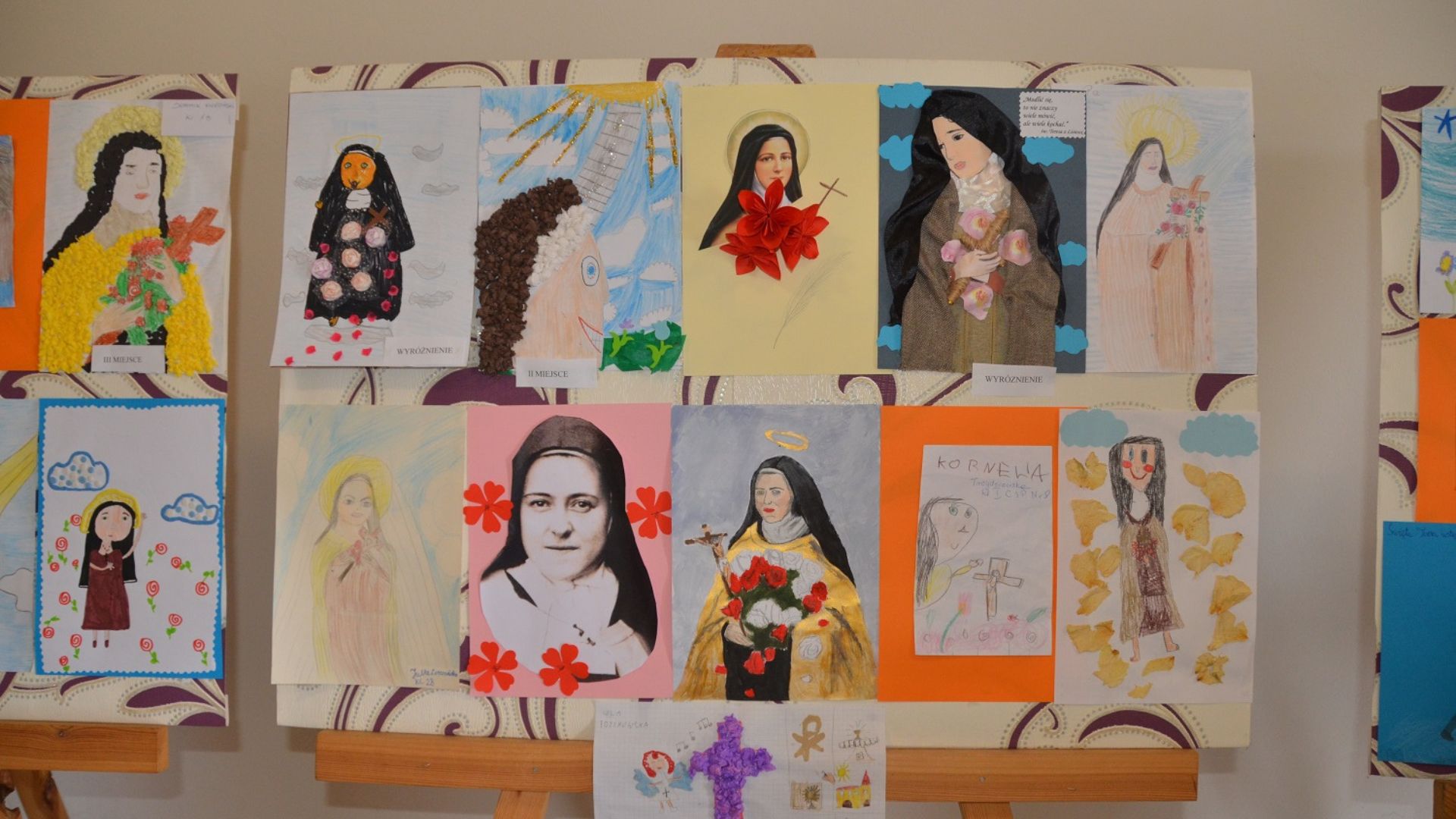 W parafii Matki Bożej Królowej Polski w Toruniu zorganizowałyśmy konkurs plastyczny dla dzieci. Uczniowie ze szkół podstawowych w dowolnej technice mieli przedstawić obraz, jak św. Teresa od Dzieciątka Jezus wstępuje do nieba. W sumie w konkursie wzięło udział 45 osób, głównie dzieci z nauczania początkowego.
