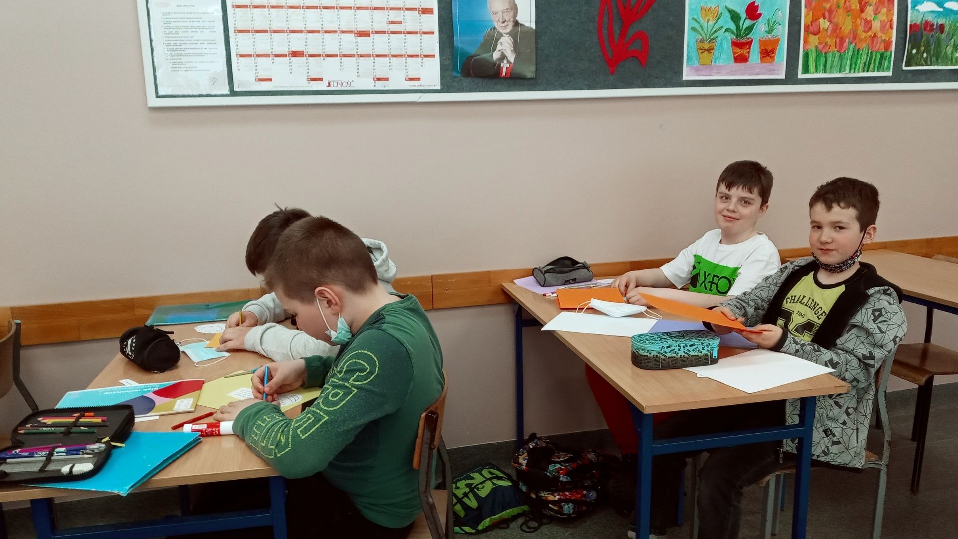 Uczniowie klas 4 razem z s. Bogumiłą Ptasińską CST wykonali kartki świąteczne dla chorych, którzy nie opuszczają swoich domów. Dzieci chętnie podjęły się zadania i ofiarnie zaangażowały się w prace. W sumie dziewczynki i chłopcy wykonali 107 świątecznych kartek, na których zostały wypisane specjalne życzenia:
