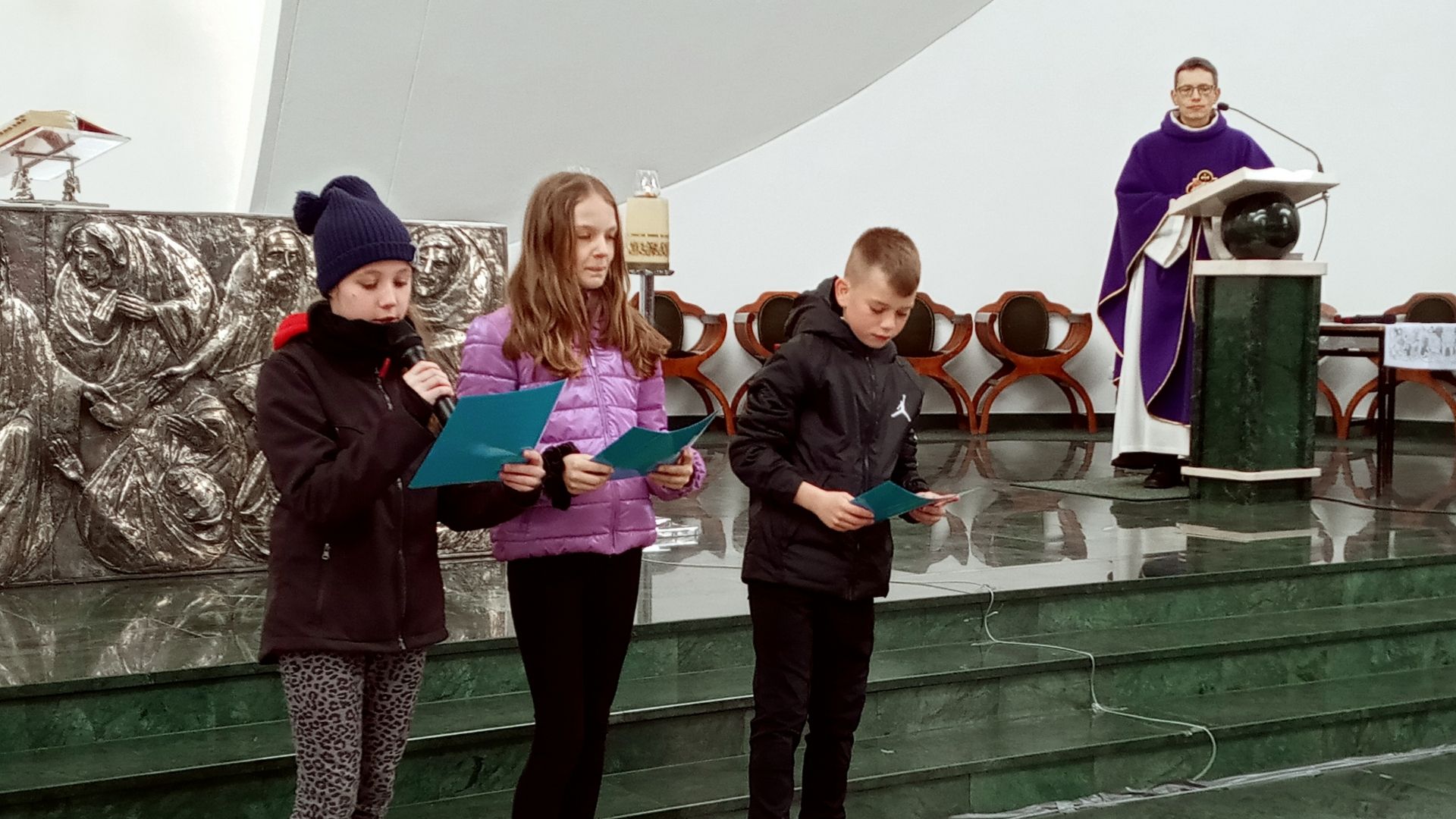 Siostra Paulina Klejny razem z uczniami ze Szkoły Podstawowej nr 23 przygotowała rozważania drogi krzyżowej, liturgię Słowa i podziękowania podczas Mszy Świętej na zakończenie rekolekcji.