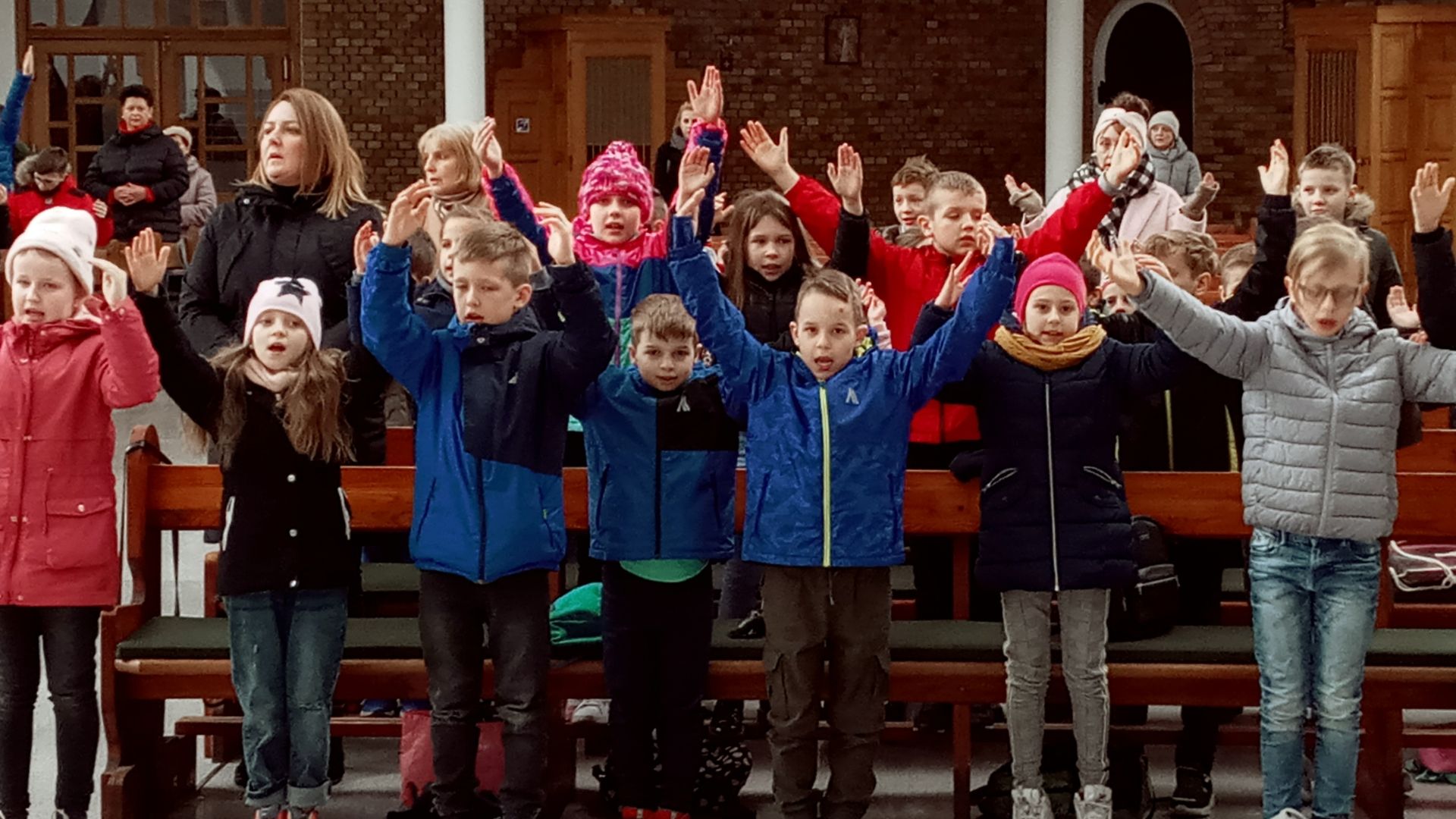 W czasie nauk rekolekcyjnych dla klas 1-4 ze Szkoły Podstawowej nr 8 śpiew animowała siostra Bogumiła Ptasińska razem ze scholą parafialną. Dzieci chętnie śpiewały piosenki z pokazywaniem i zaangażowały się we wspólne uwielbianie Boga. Dodatkowo siostra Bogumiła z uczniami z klasy 4a przygotowała liturgię Słowa podczas Eucharystii. Siostra Ludmiła Wojtkiewicz zaaranżowała ze swoimi uczniami podziękowanie dla księdza proboszcza.