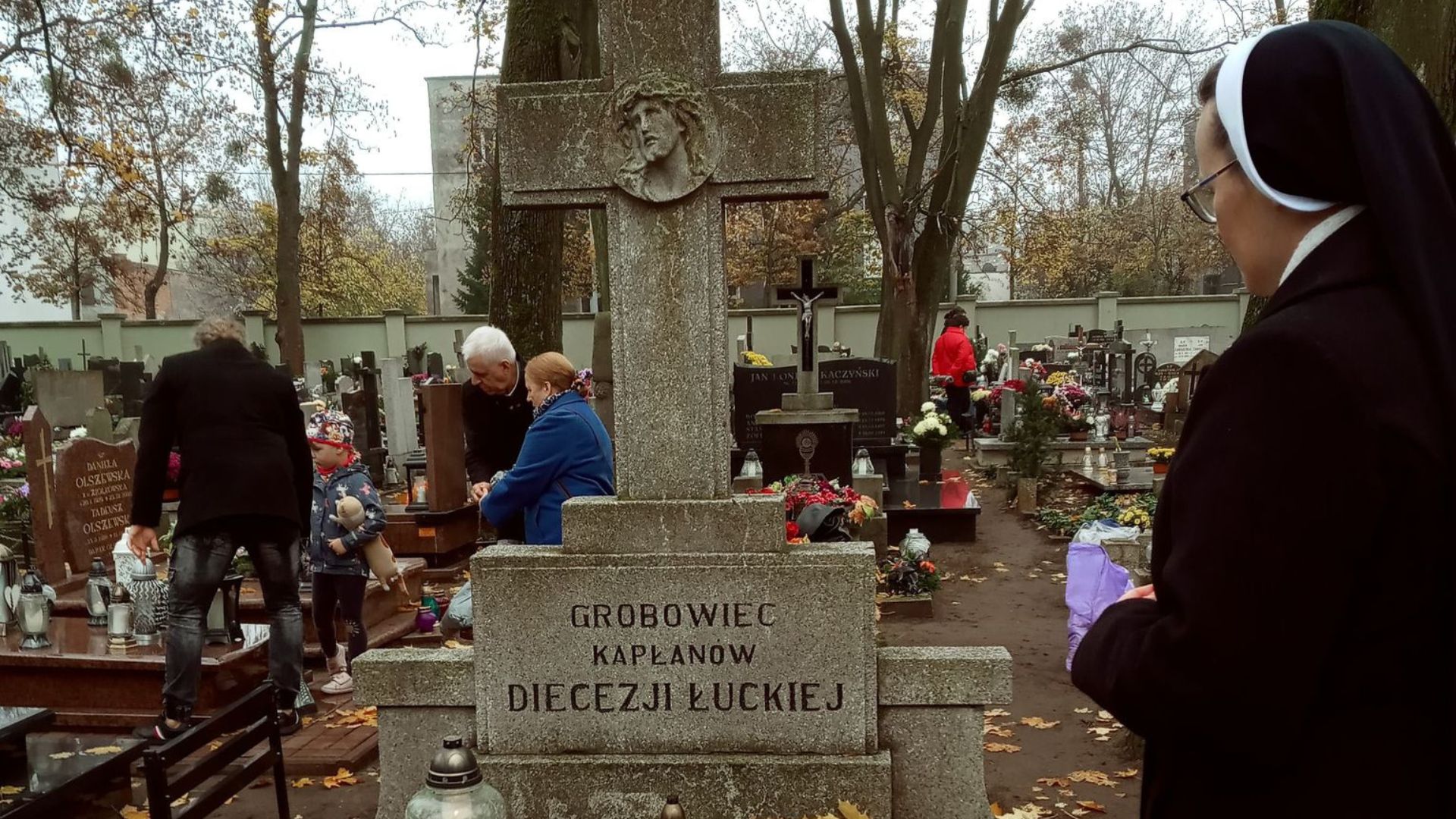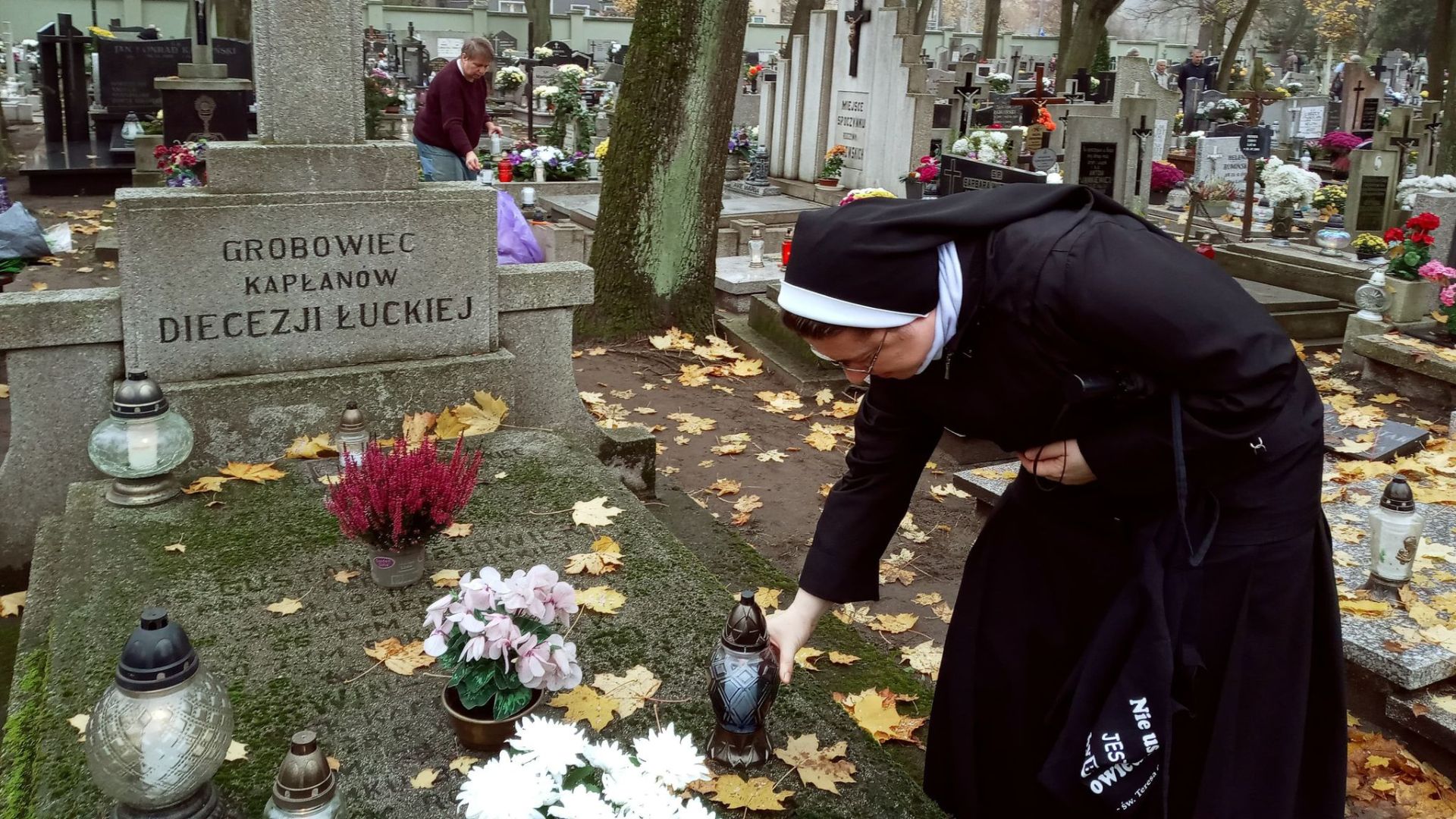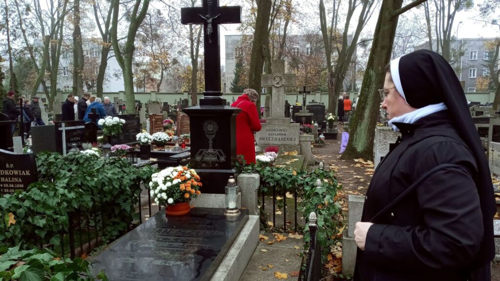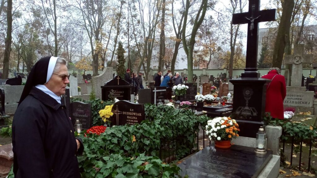 Potem udałyśmy się na cmentarz parafialny przy ul. Antczaka, gdzie spoczywają zmarli kapłani diecezji łuckiej. Zapaliłyśmy znicze na grobie ks. Jana Szycha oraz innych kapłanów z Wołynia.
